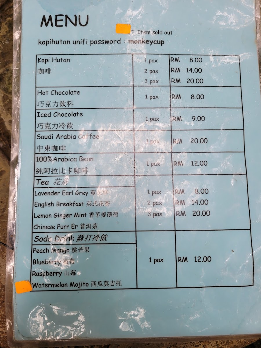 Monkey Cup Garden (Taman pokok peria kera/கணட பஙக) Menu